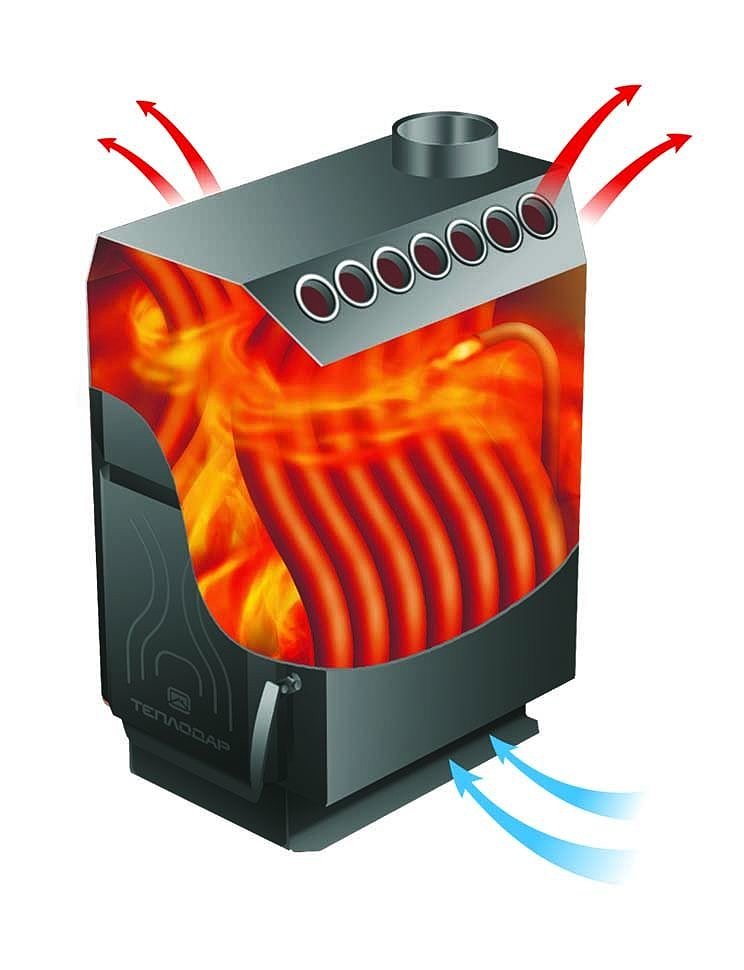 Чем больше плечо конвекции, тем больше разгон потока воздуха, тем лучше осуществляется теплосъем с топки. А чем быстрее и лучше отводится тепло от топки, тем лучше она воспринимает его от огня, тем самым увеличивая КПД.