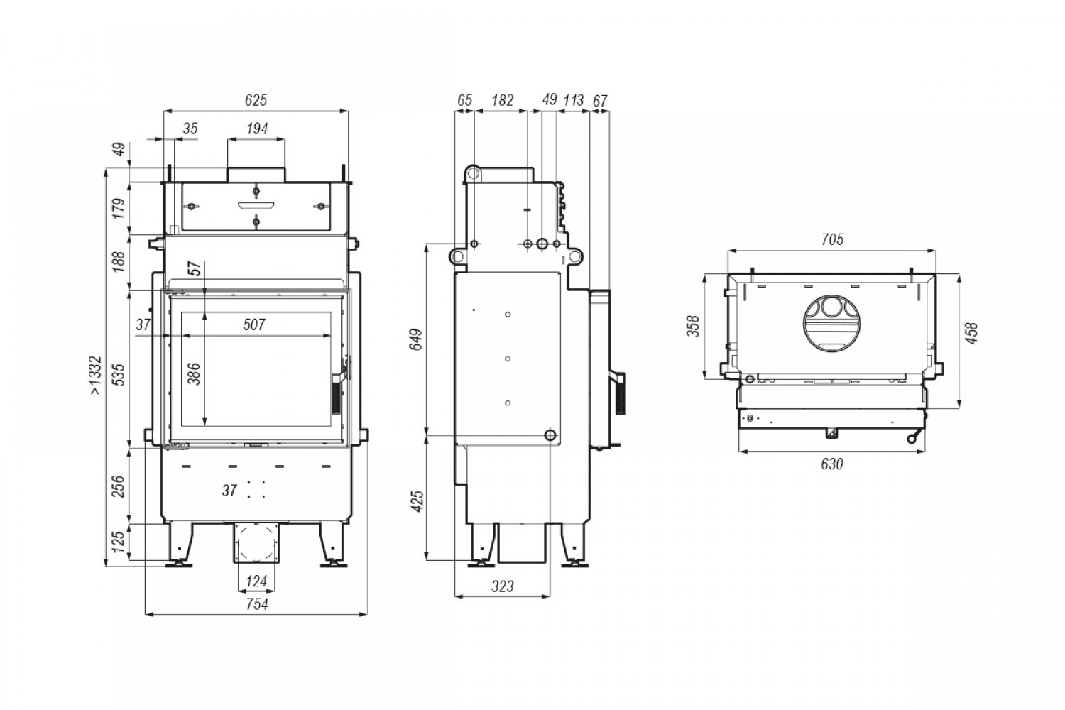 | Способ открытия дверцы топки | Боковое открытие |